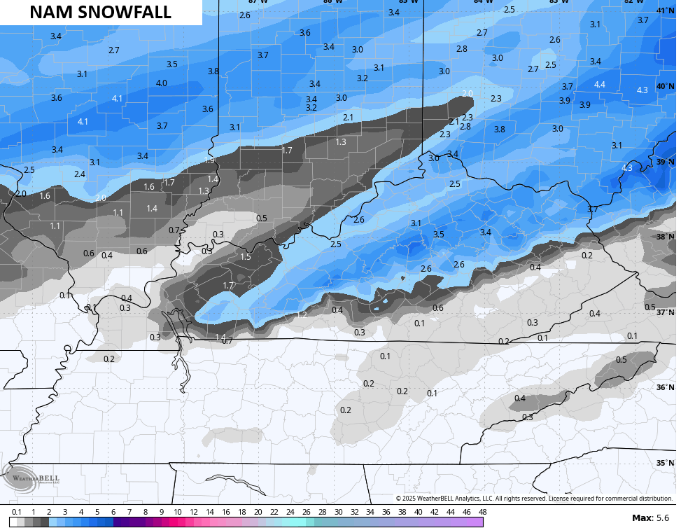 It’s going to snow VERY HARD for a few hours late tonight, especially in the Bluegrass Region north and northeast.