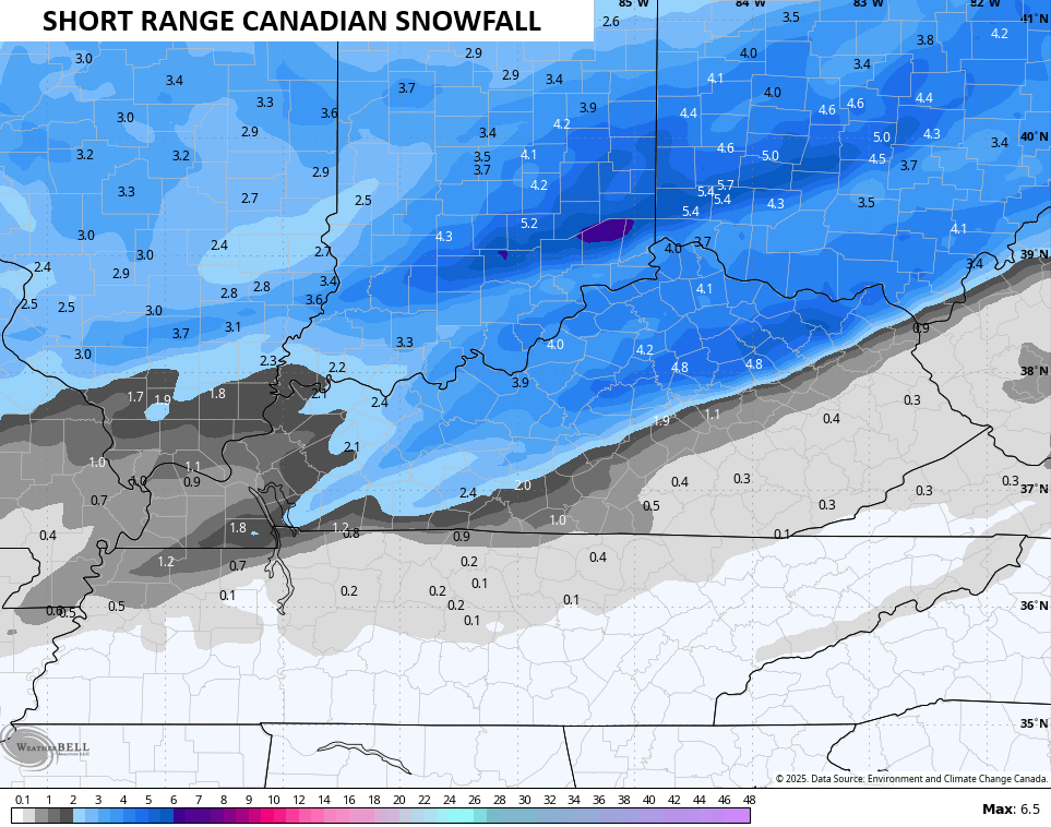 The late day Short Range Canadian also beefed up snow totals…