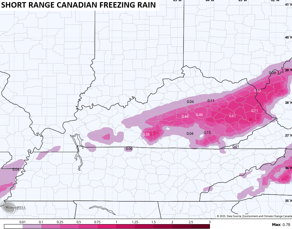The model is now seeing some freezing rain…