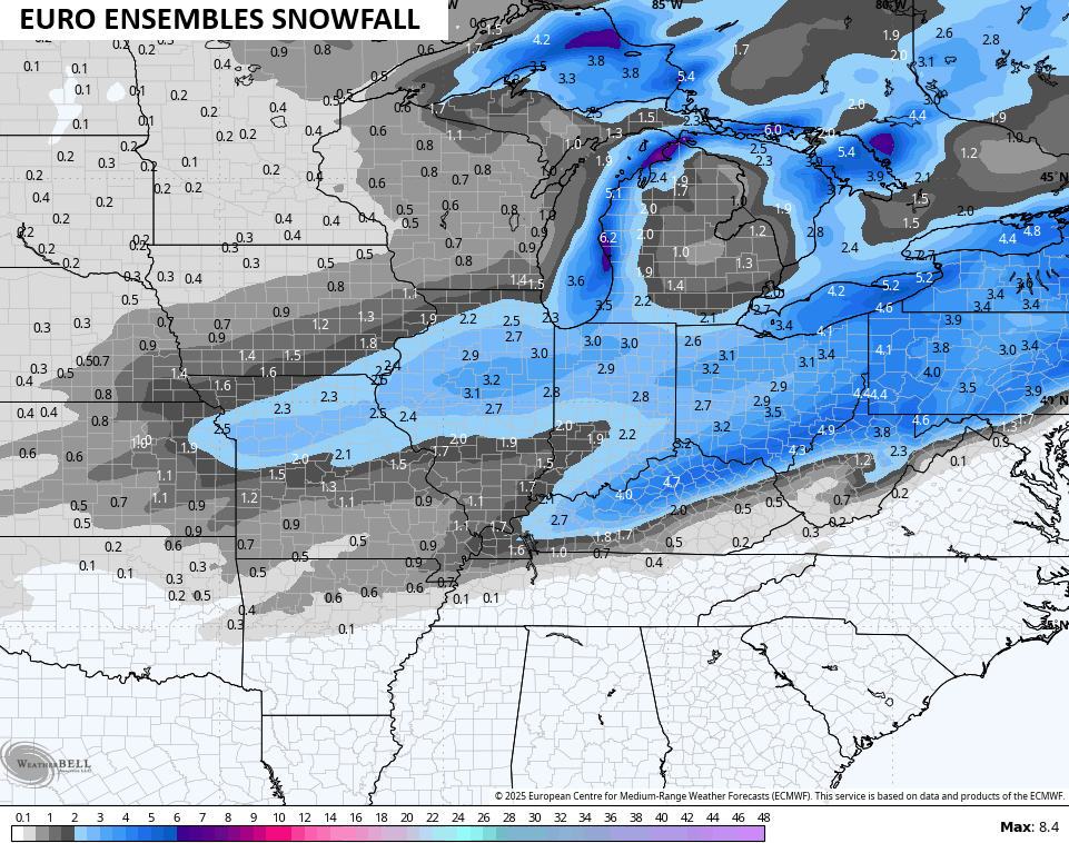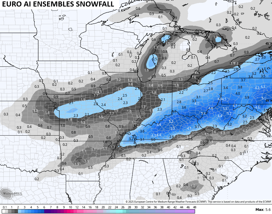 Even the average of more than 50 members of the EURO Ensembles show a healthy snowfall…