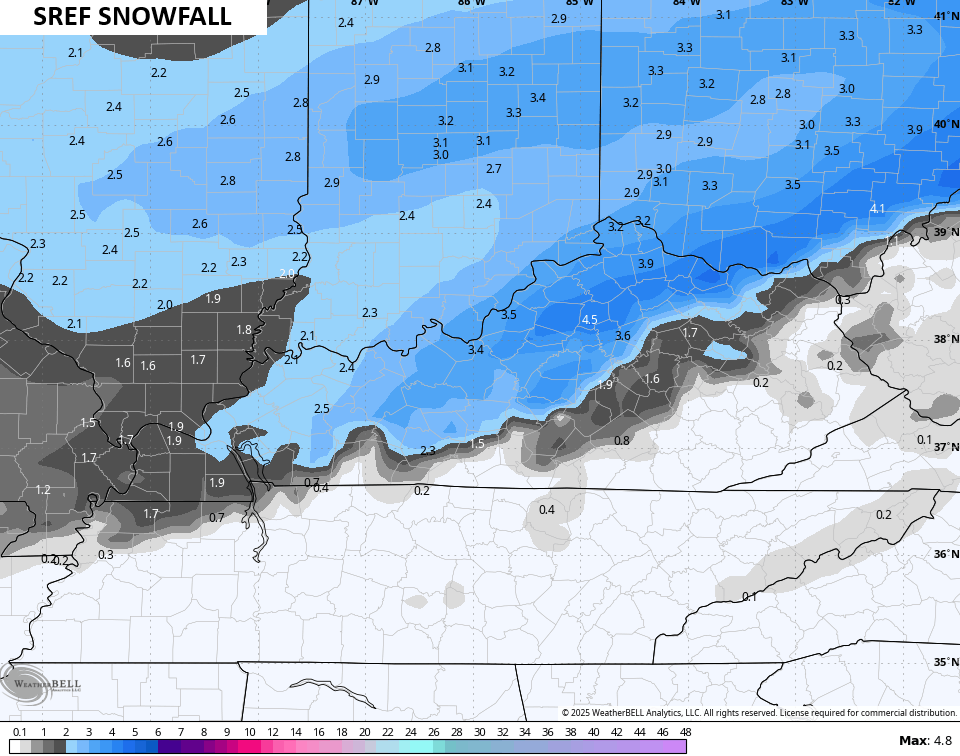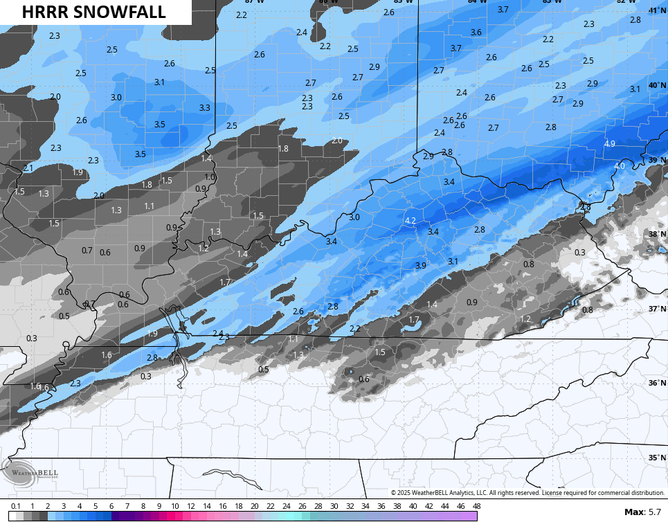 The Winter Weather Advisory got expanded farther south and that’s a good thing but it’s still not far enough south. I’m still worried about a corridor of snows that can push the 4″ mark, which is Winter Storm Criteria for Kentucky. Here’s a look at the current Winter Weather Alerts…