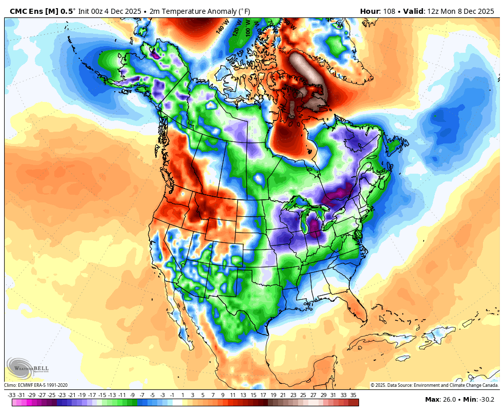 The models have struggled immensely this cold weather season and they will continue to do so. They just cannot handle all the energy diving into the country, nor can they handle the amount of cold. Watch how the Ensembles keep arctic shots diving into the country and notice how they keep originating in the same place… Northwestern Canada and Alaska…