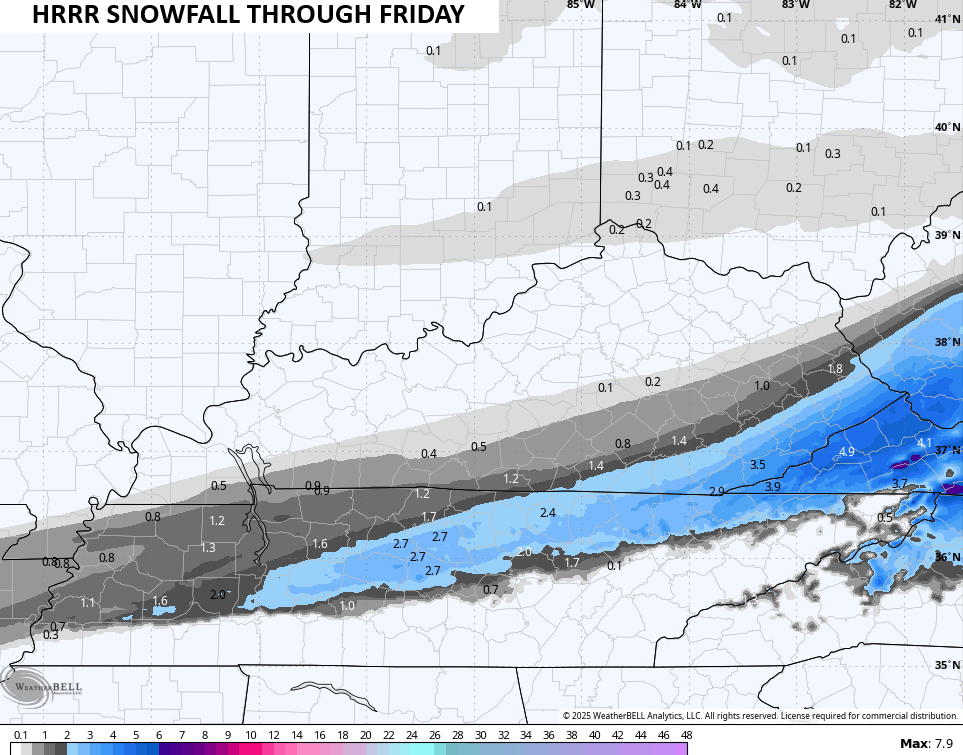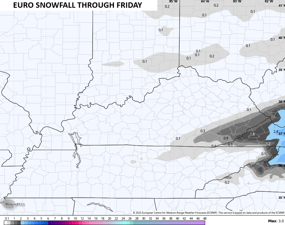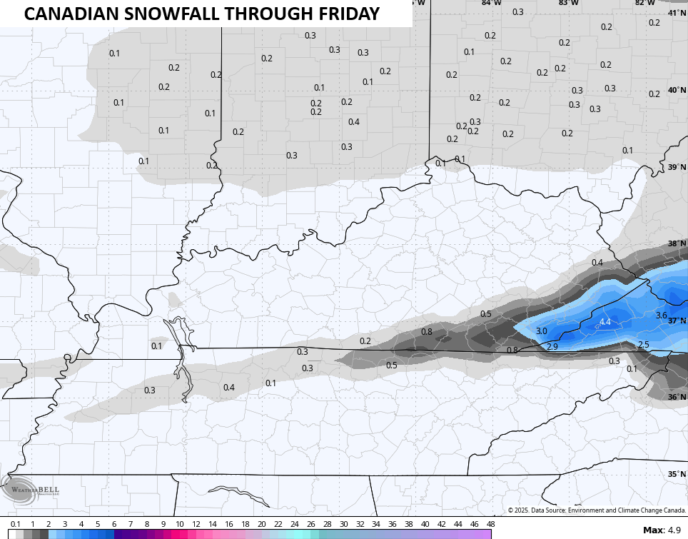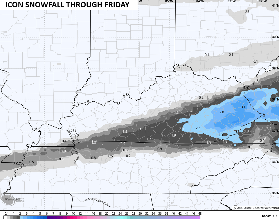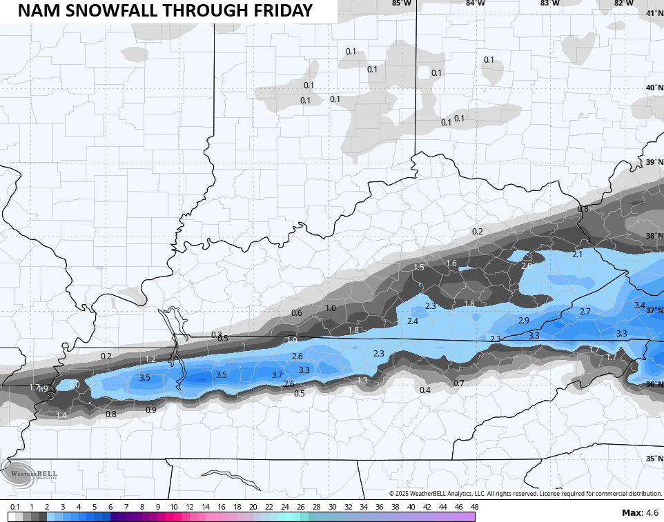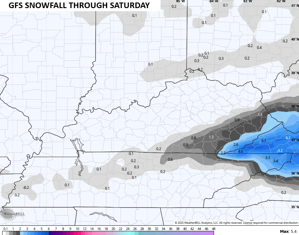 I still have a few questions with the system coming in from the south tonight and Friday morning. Just how far north can this system get? It’s a fast-mover and I believe it can put down a light snowfall across southeastern Kentucky, and potentially, across southern Kentucky.