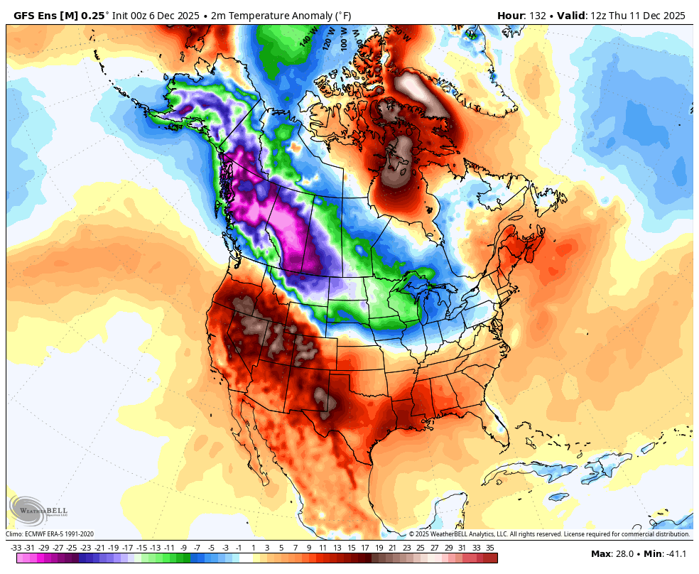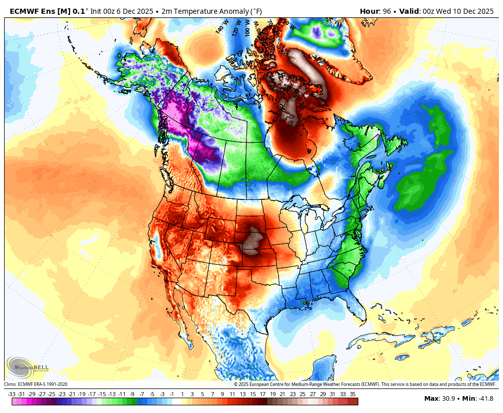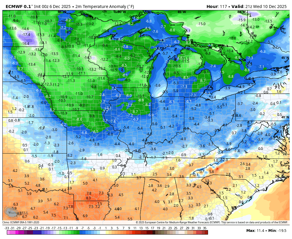 Before we look ahead, let’s look at exactly how cold we are to start December. The first 5 days are in the books and we’ve had two snow systems to go along with one of the coldest starts to the month in a long time. Look at how much of the country is MUCH colder than normal, so far…