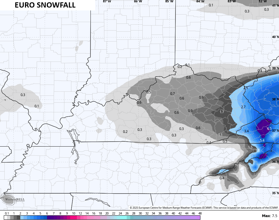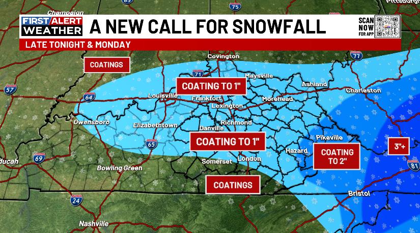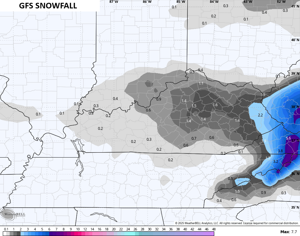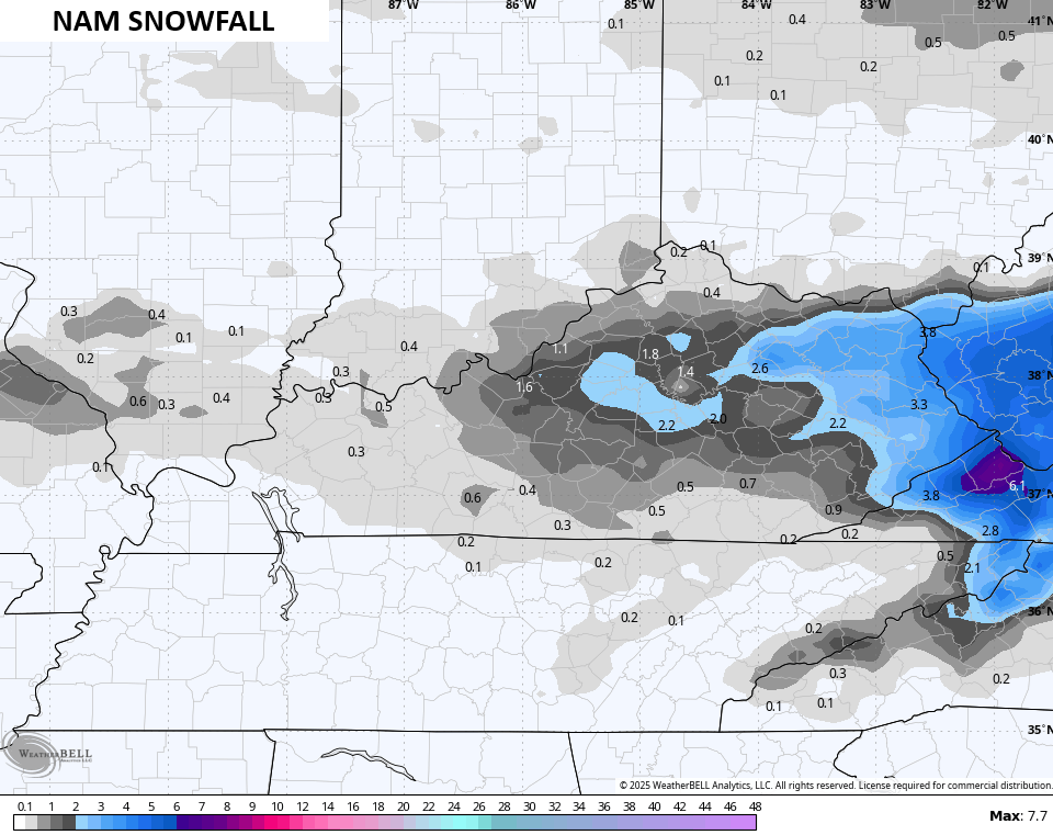 Listen, there’s a chance for this to overachieve from the Bluegrass Region down the Mountain Parkway. There’s a little comma head of snow possible in these areas.