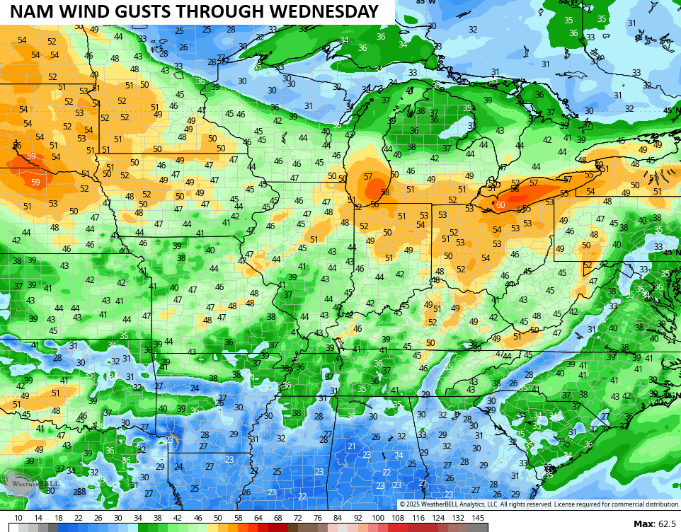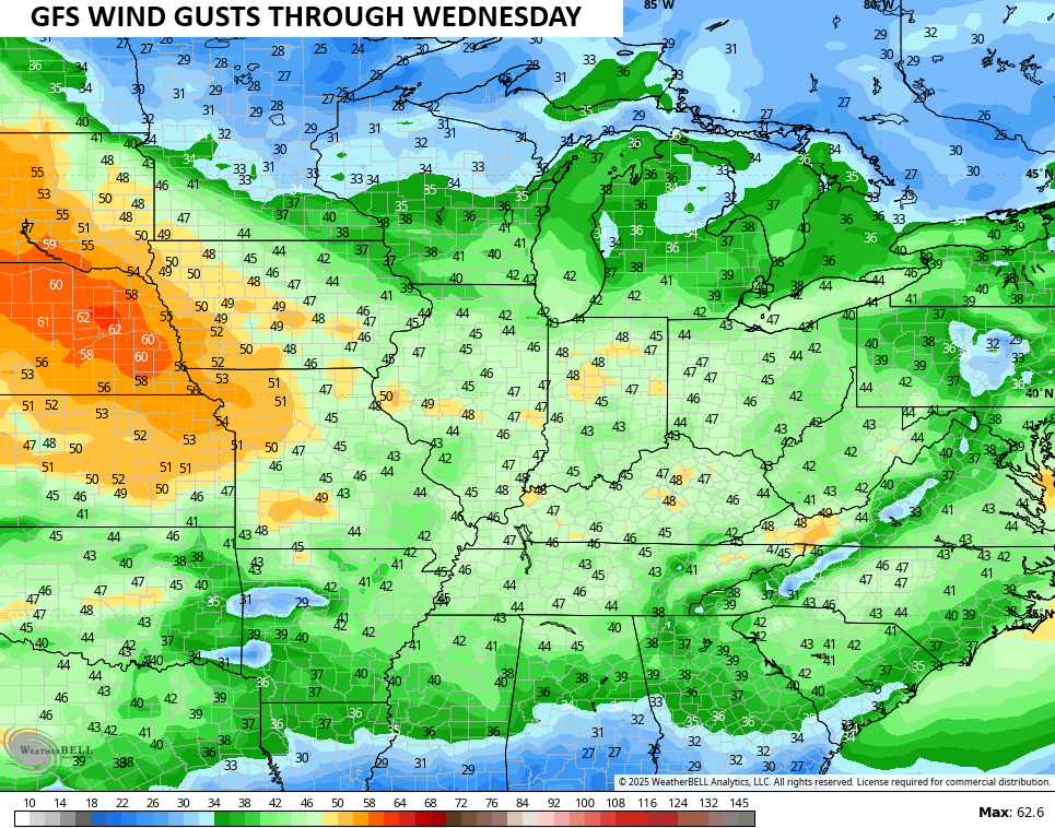 Frigid wind chills continue this afternoon into the start of our Tuesday. That when gusty winds from the southwest kick in ahead of an approaching arctic front arriving Wednesday afternoon and evening. The winds along and ahead of this system may gust to 40mph-50mph…