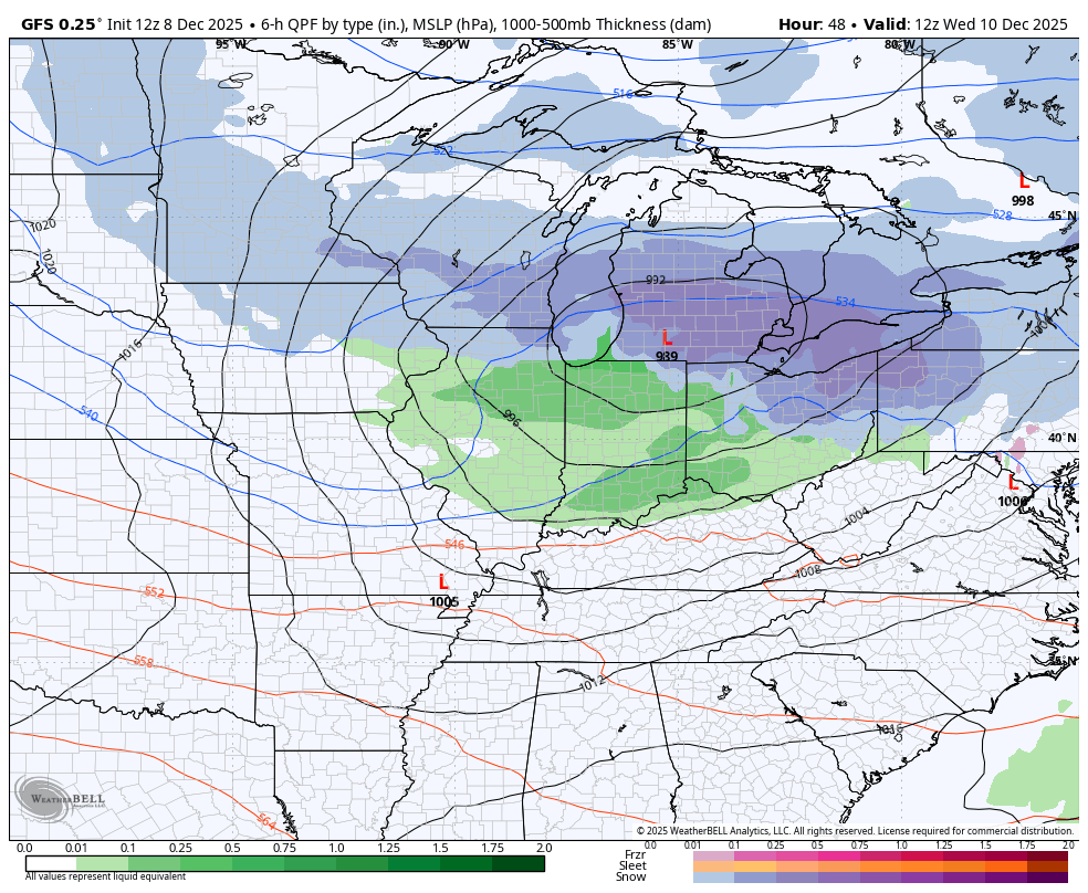 That system has some showers ahead of it with a big temp drop and snow showers behind it. The flow may even have a direct connection to Lake Michigan for a time early Thursday. I’ve seen setups like this in the past put down accumulating snows in central and eastern Kentucky and that’s what I’m looking for Wednesday night and Thursday…
