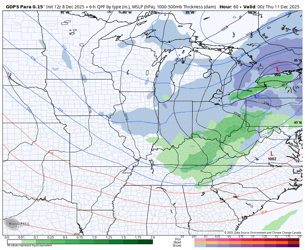 That’s a system that will likely put down accumulating snows into Friday. It will then be followed up by the chance for a bigger system on Saturday and Saturday night. All the models are seeing this, but vary greatly on what to do with it.