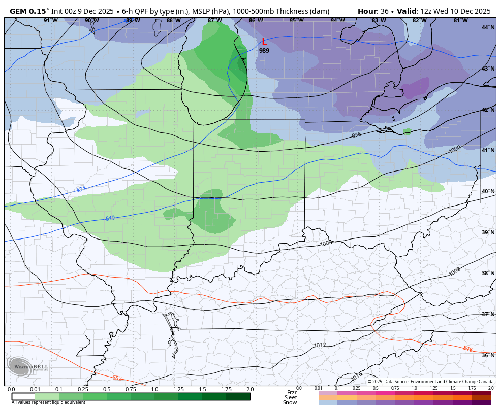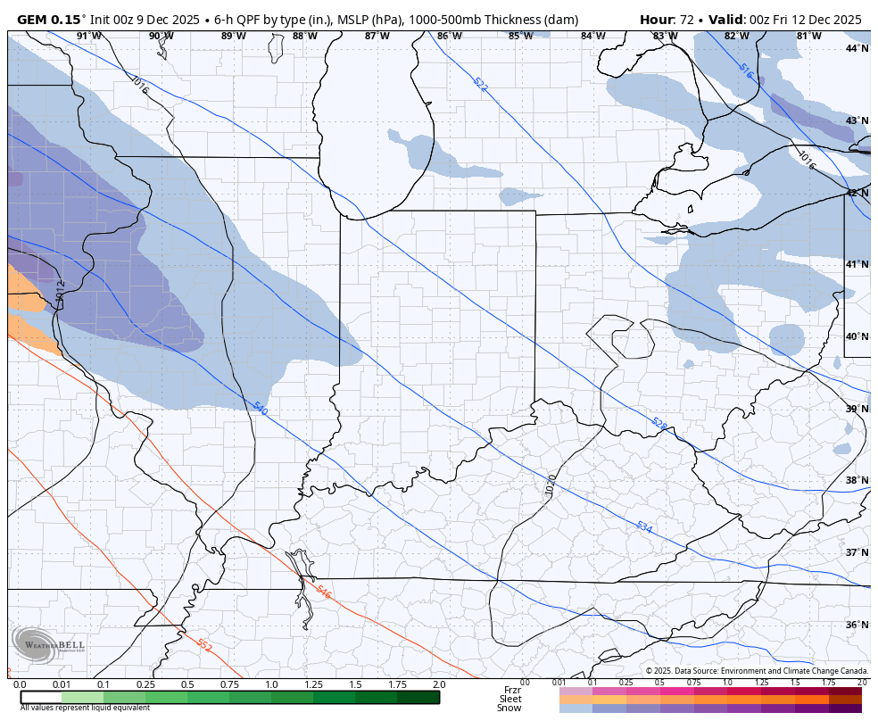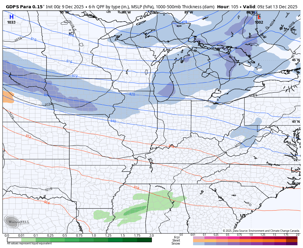 The Canadian family has a more widespread band of snow, but they even disagree a bit on the placement. The regular Canadian looks like this…