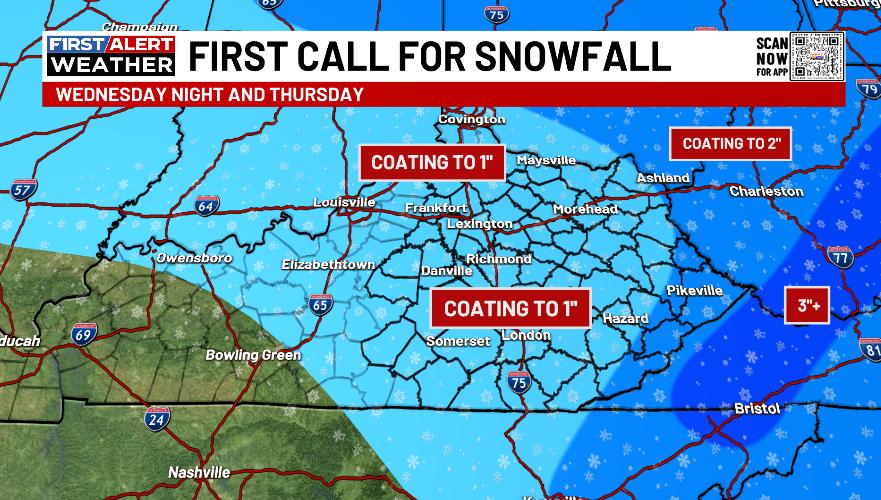Widespread coatings to 1″ will be likely into much of central and eastern Kentucky with higher amounts in the far southeastern mountains…