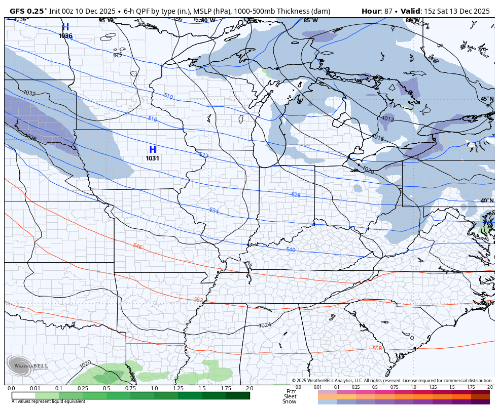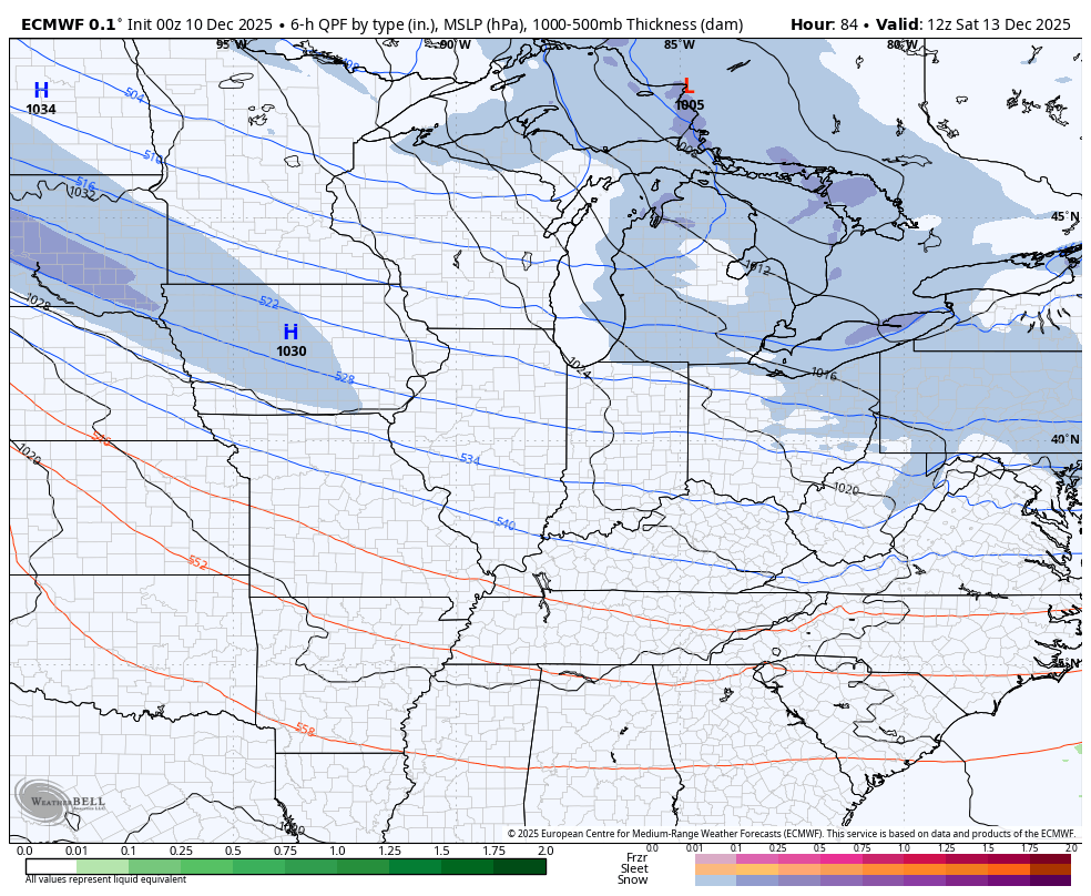 I think the models continue to bend farther south with the track because of the same reasons I’ve highlighted all week. 1. Arctic air is dense and heavy and usually pushes things a bit south. 2. There’s a tremendous snowpack across the Great Lakes and northern Ohio Valley.