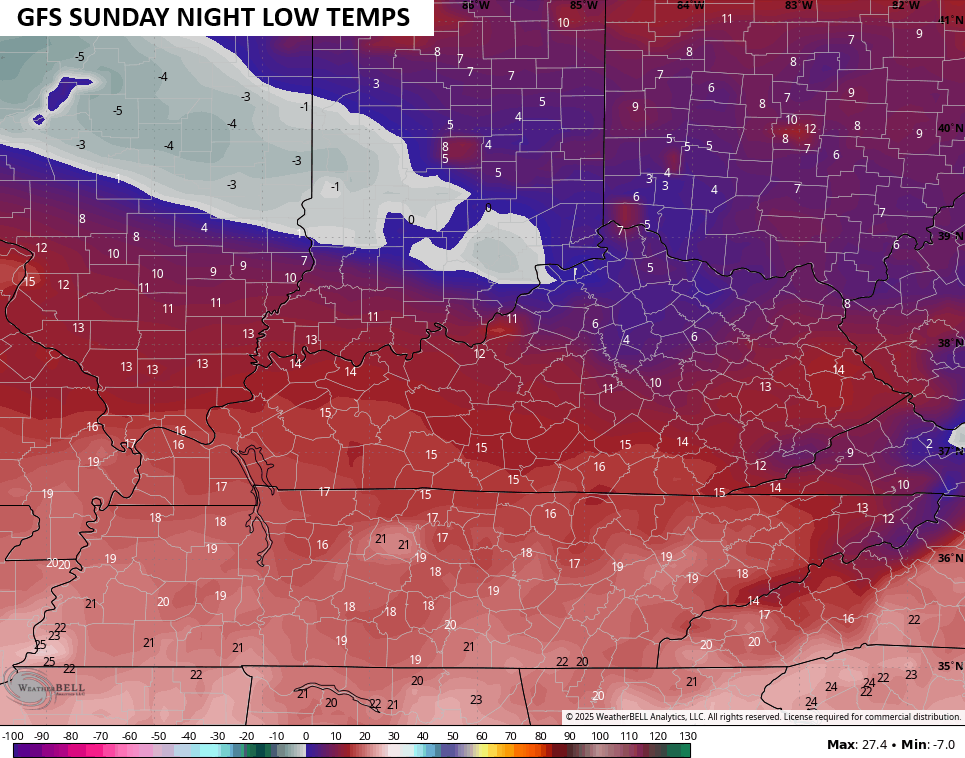 Actual lows have a chance to hit negative numbers if there is indeed a decent snowpack on the ground…