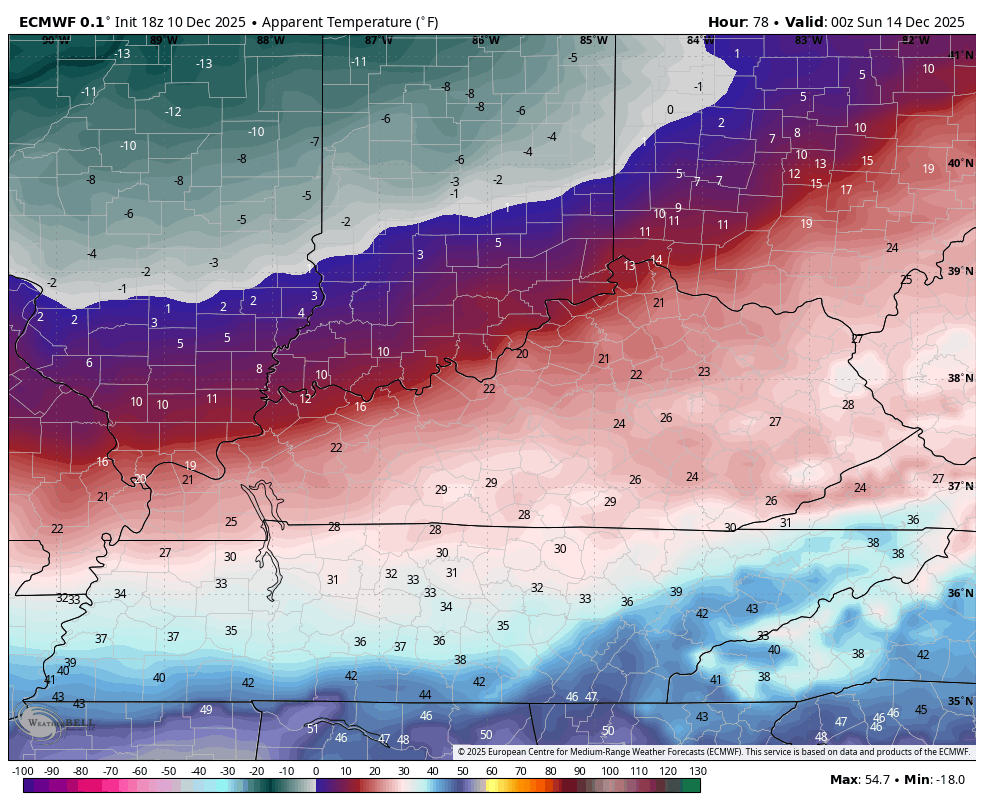 This animation from the EURO shows wind chills from Saturday evening through Sunday morning…