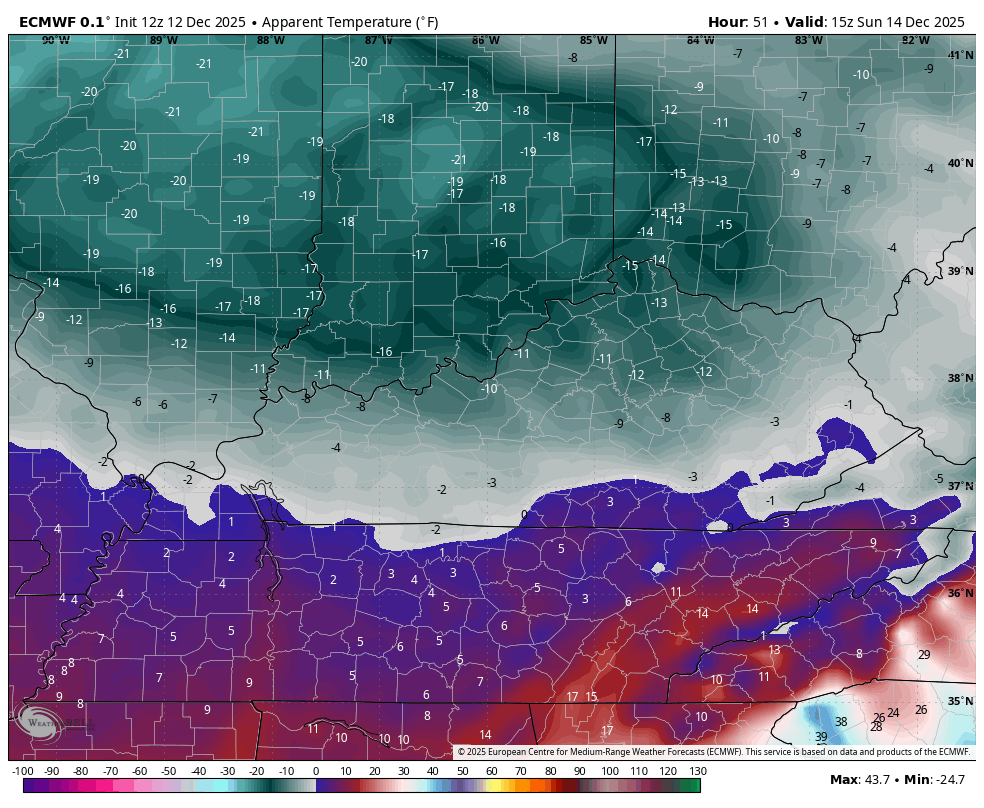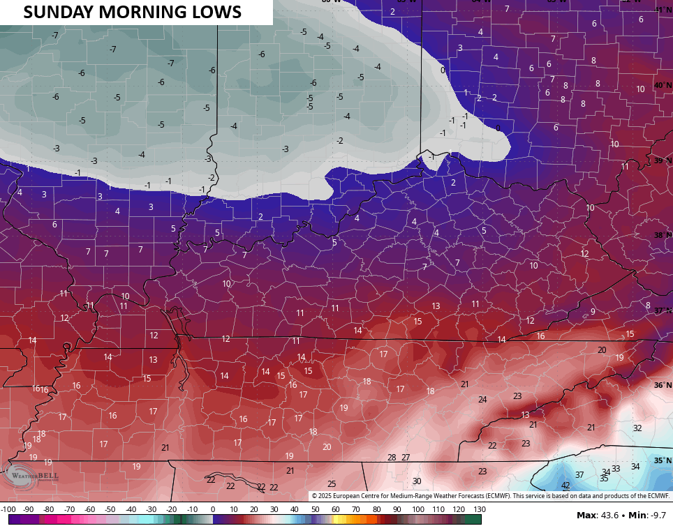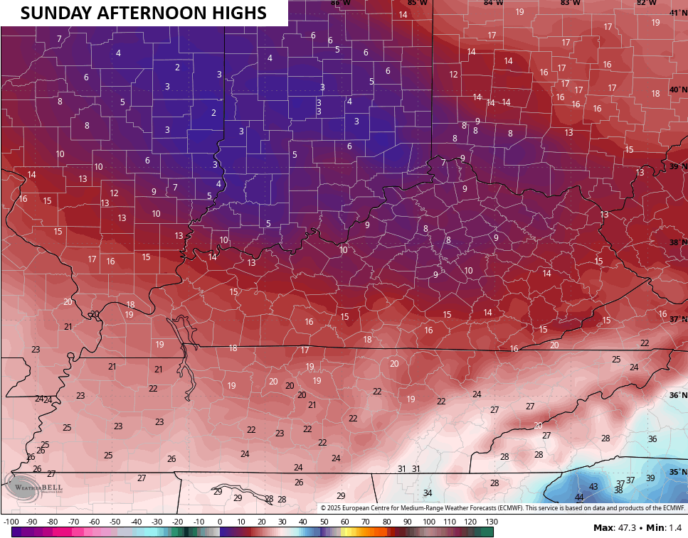 - High temps Sunday may barely get into the low and middle teens for areas with snow on the ground.