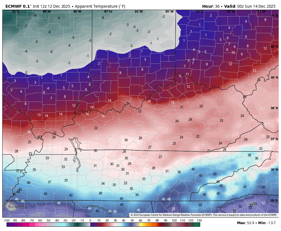 The wind chill forecast from the EURO starting at 7pm Saturday and going through 10am Sunday continues to be nasty…