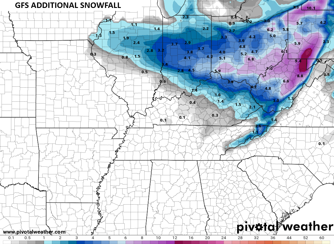 It’s late in the game for model-watching, but it is noted the GFS came quite a bit south with the late afternoon run. Here’s the additional snowfall from the time the model was run…