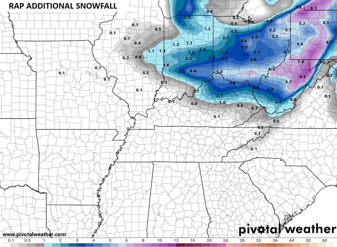 The RAP updates every hour so it has better information in it. It REALLY came farther south into the Bluegrass Region …