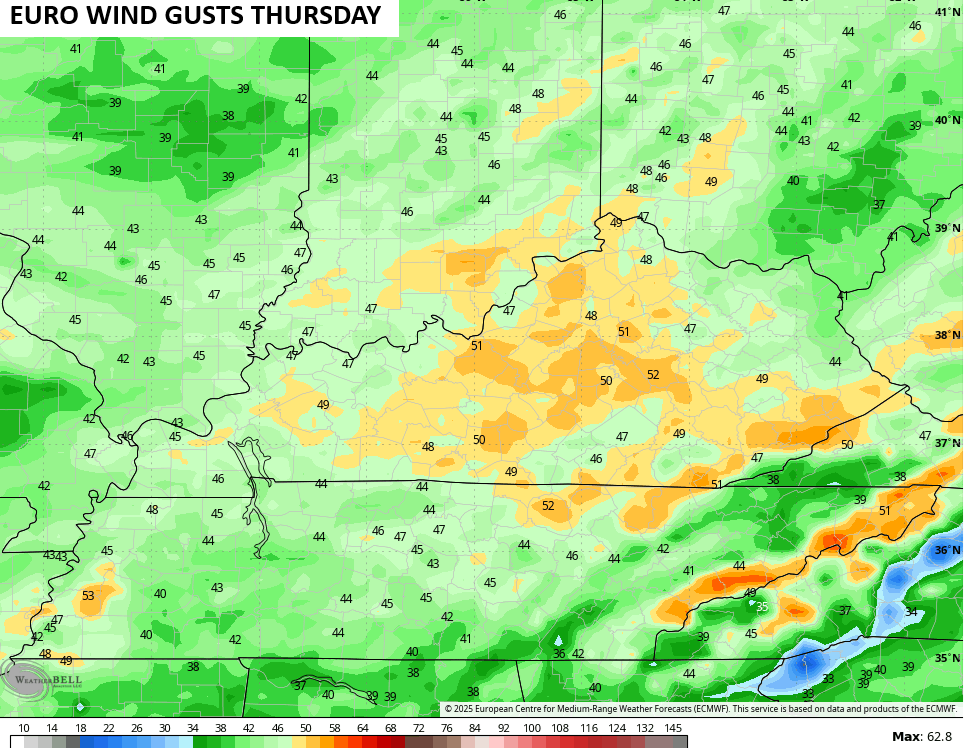 Temps come up on a stout southwesterly wind. There is the chance for a shower on Wednesday, but that chance is fairly low. Thursday into Thursday night can turn super windy with gusts of 40mph-50mph possible…