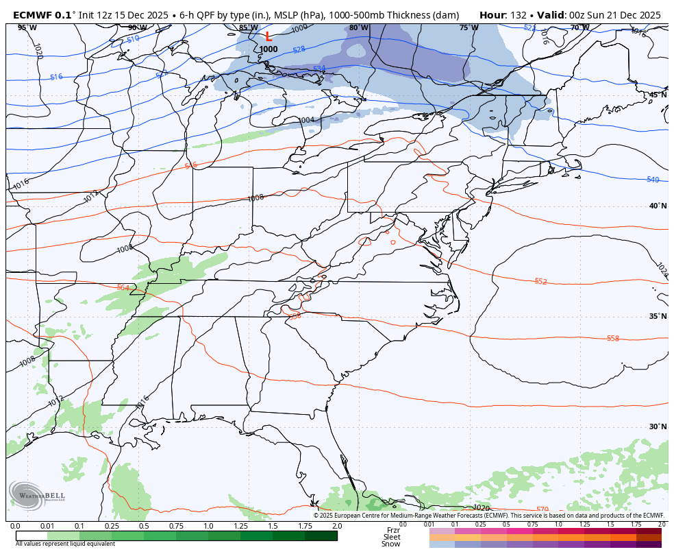 Looking into Christmas week, the big warm ridge centered across the southern Plains will flex some, but the cold air across Canada is going to try to send shots sliding into the northeastern half of the country. Some of these may graze our region and the operational models are starting to see this…