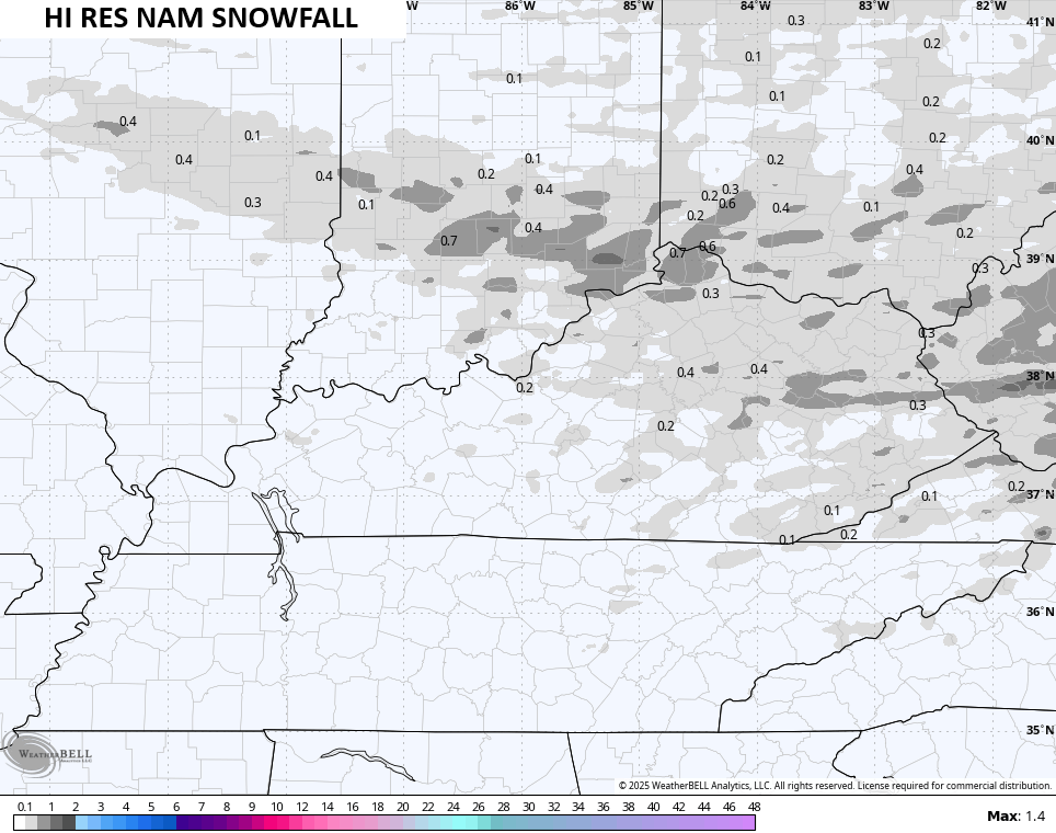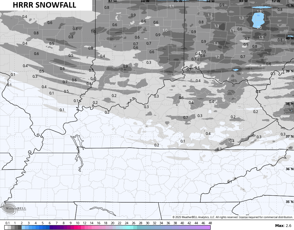Light accumulations will be possible and there’s the chance for slick roads into Friday morning. Some of the short-range models are seeing the light accumulations…