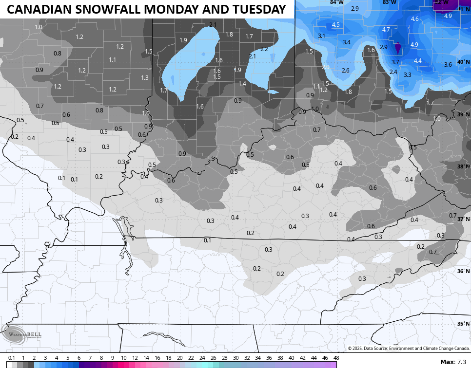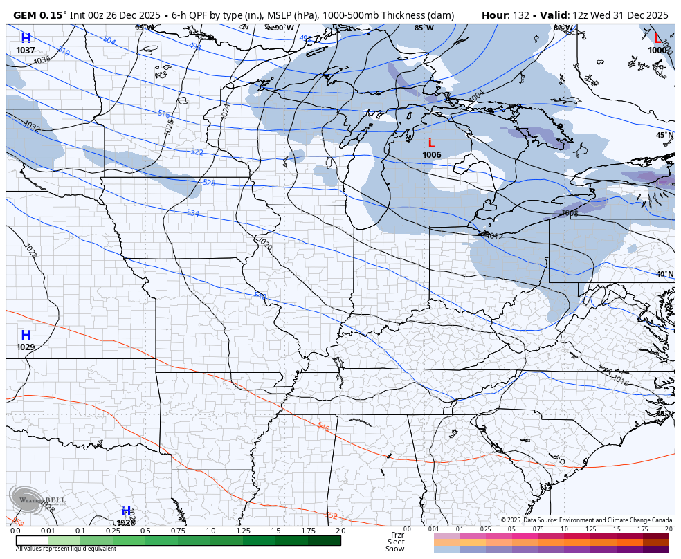 The next surge of arctic air arrives New Year’s Eve into New Year’s Day and may very well bring a swath of light accumulating snow with it. Once again, the Canadian is the leader with the other models finally catching on…