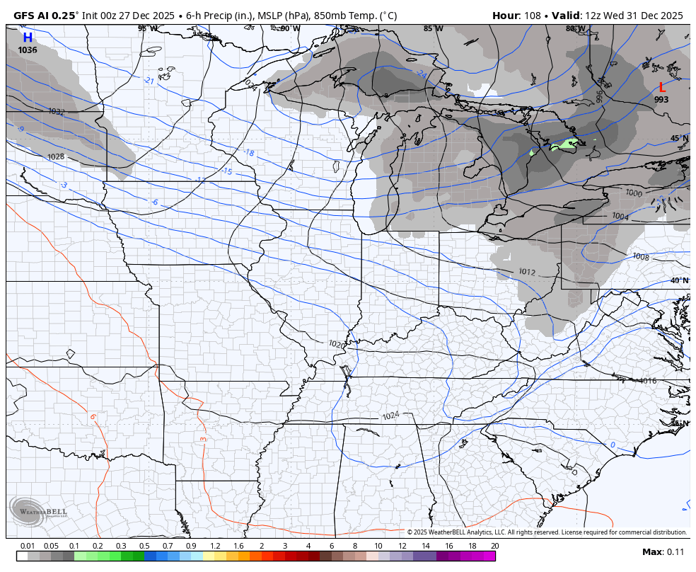 I continue to like the idea of a clipper moving in for New Year’s Day and the models show it then lose it then show it again. The GFS and GFS AI are seeing it pretty well…