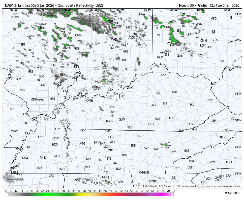 You can see this sparse action showing up on the Hi Res NAM Future Radar…