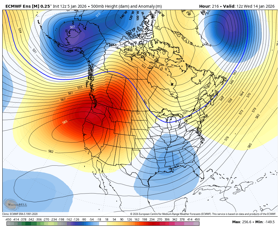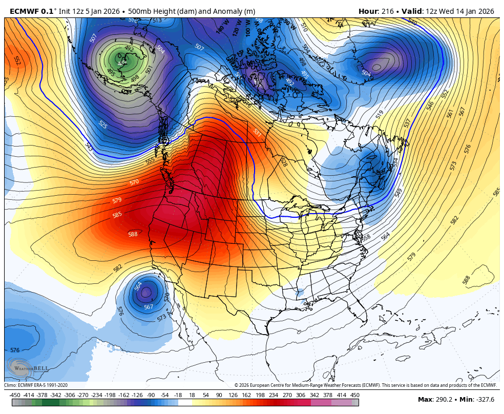 The forecast models continue to show a massive ridge going up the west coast to Alaska next week. This points toward DEEP troughs diving into the eastern half of the country. These troughs will bring arctic cold in here with the chance for a severe cold shot or two.