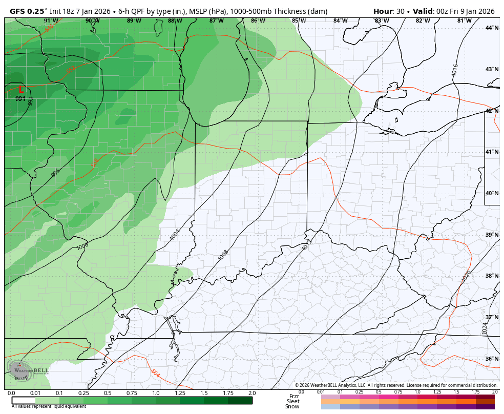 Temps on Thursday surge into the 60s and may touch 70 in the west. Clouds will be noted as a gusty southwest wind kicks in. Most of the shower and storm action is to our west but some of that moves into western Kentucky during the evening.