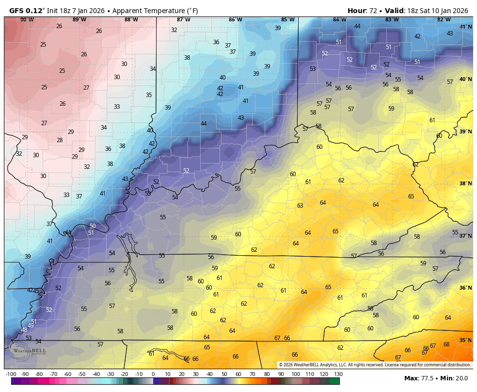 The feels like temp crashes into the teens by early Sunday and even the GFS is picking up on it. This animation starts Saturday afternoon and ends Sunday morning…