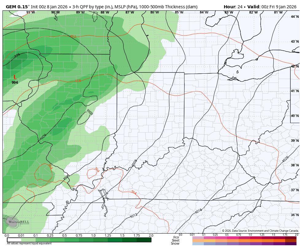 The front then hangs out right on top of us Friday night and early Saturday as another low pressure rolls northeastward along it. This brings widespread rain and some thunder to central and eastern Kentucky with higher totals in the southeast.