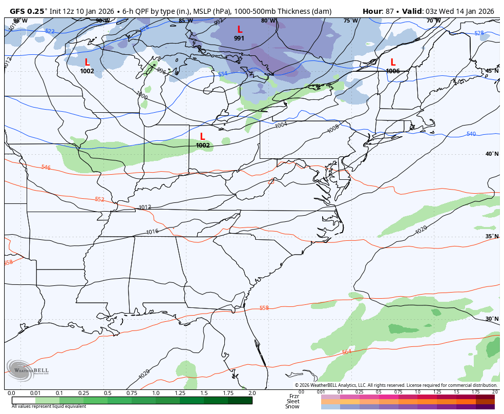 The models all have both of our systems, but they change how they handle them with each run. That’s to be expected and this will continue until we get closer to the first system that arrives late Tuesday into Wednesday. Once they models figure out how to handle that one, they should quickly figure out what happens with the storm system behind it.