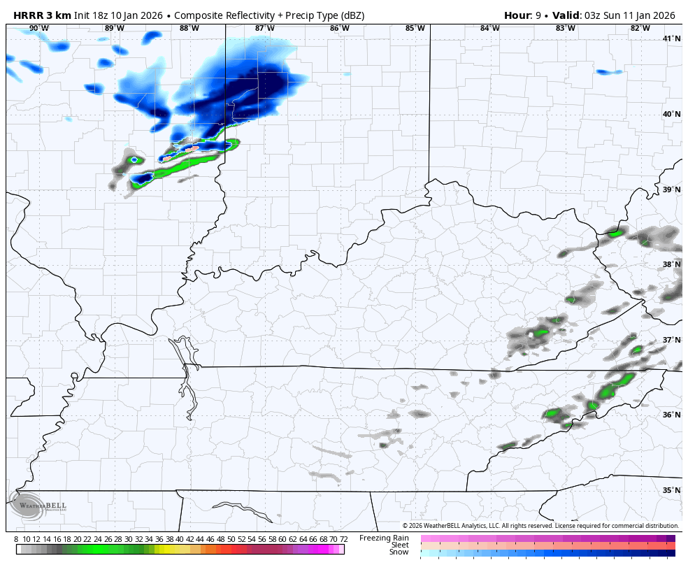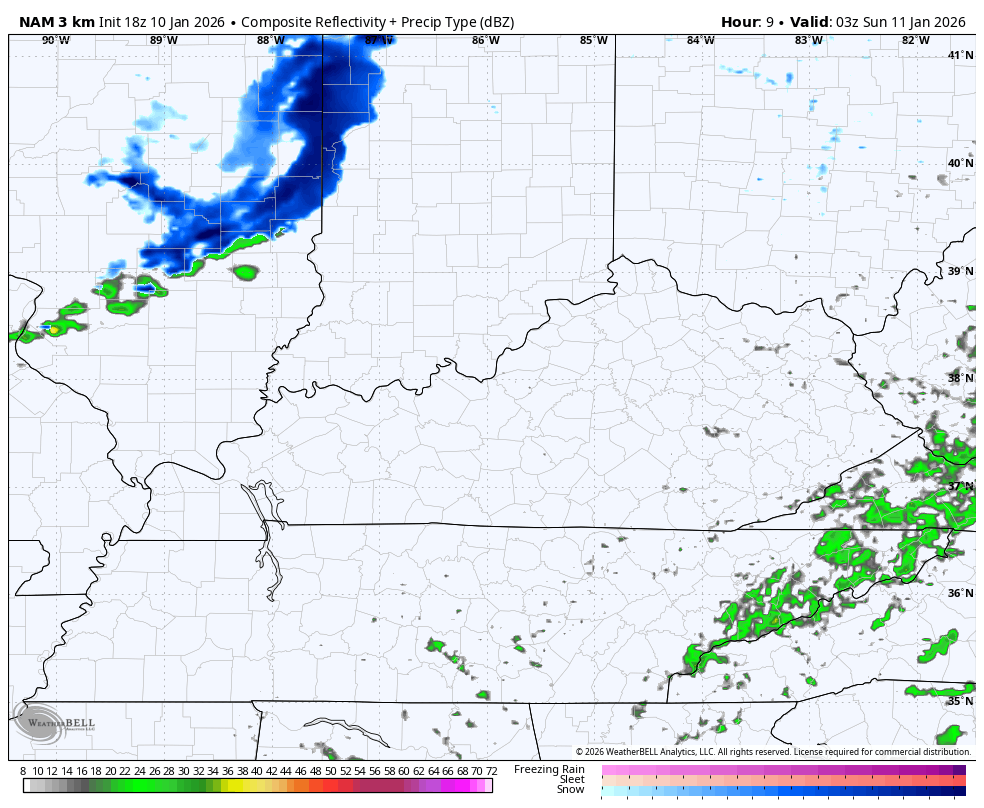 Winds are going to be cranking with gusts of 30mph at times. That could mean a few snow squalls crank as well. Light accumulations are possible across central and eastern Kentucky with coatings showing up. I suppose the potential is there for a stripe or two to push up to 1″. Maybe.
