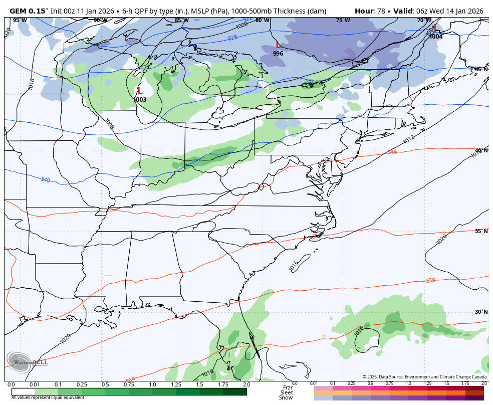 Now, we should note the Canadian continues to be more strung out and brings a series of clippers through here with accumuating snows…