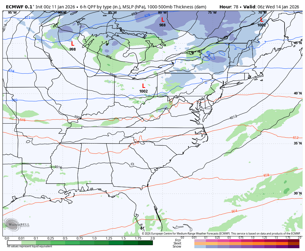 Good Sunday to one and all. Snow showers and flurries are making their way across central and eastern Kentucky today, ushering in a full-blown winter pattern. This return to winter kicks into high gear for the week ahead with two storm systems of interest.