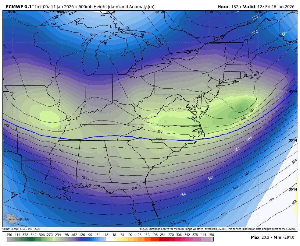 Taken verbatim, that’s a potent, but fast-mover that bowls quickly to the east. That energy would pop a surface low somewhere in the southern Appalachians but it would quickly zip eastward.