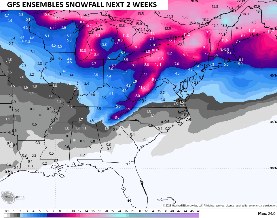 The average of the 30 members shown there looks like this across the east…
