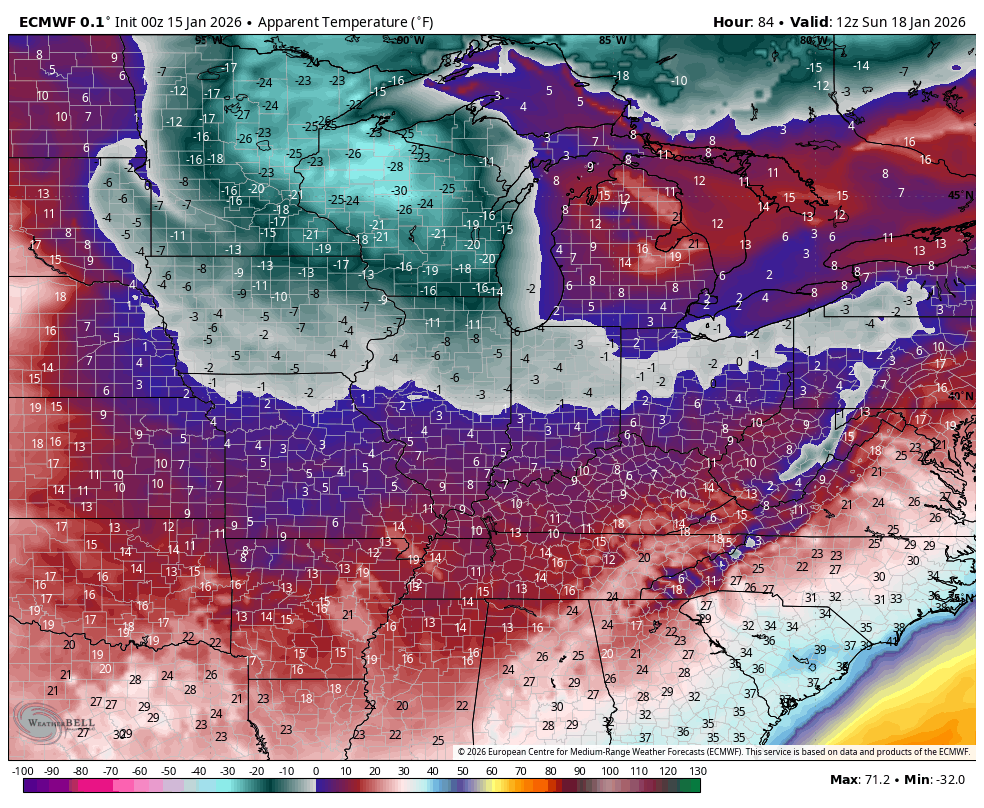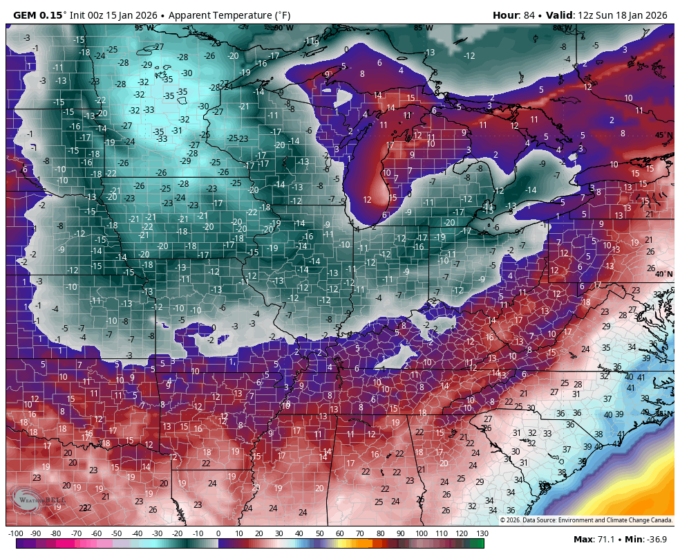 With the arctic air coming in Sunday through early next week, wind chills may drop below zero at times. The Canadian is brutal with the wind chills…