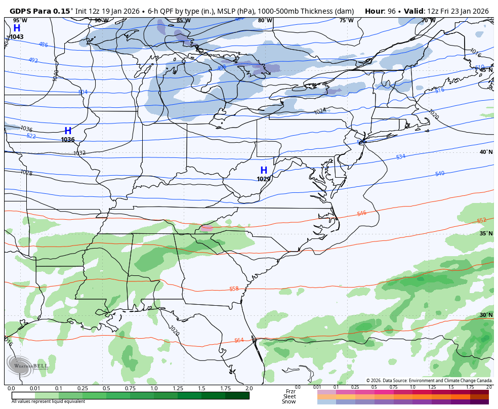 The Parallel Canadian is showing one of my biggest concerns and that’s for the lead low to reach all the way into central West Virginia before the main low takes over. That kind of track brings significant snow, sleet and freezing rain into our region. Here’s what that run looks like…