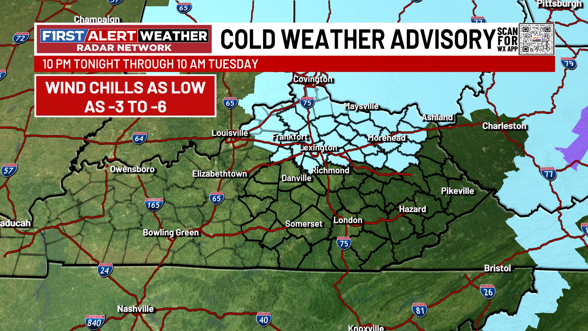 Our Cold Weather Advisory continues tonight into Tuesday morning for much of north central Kentucky. This includes the Lexington Metro north and northeast…