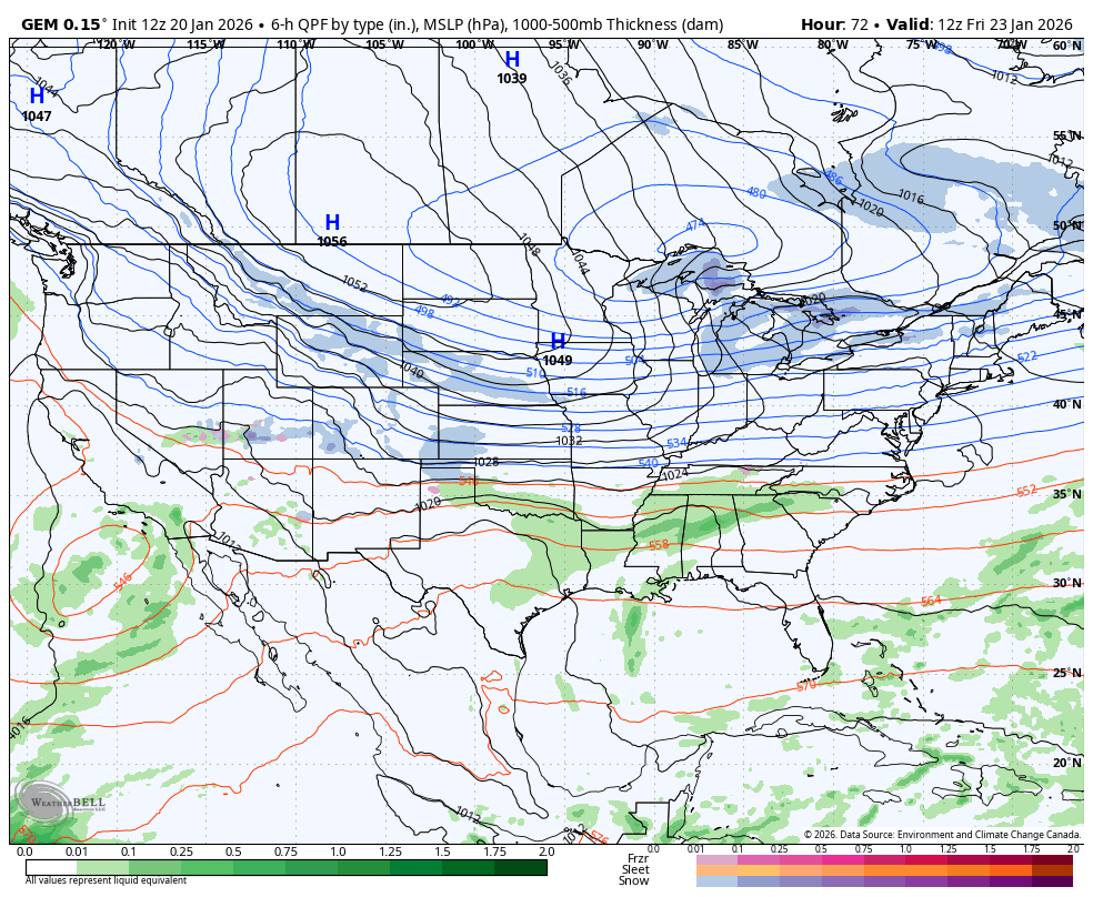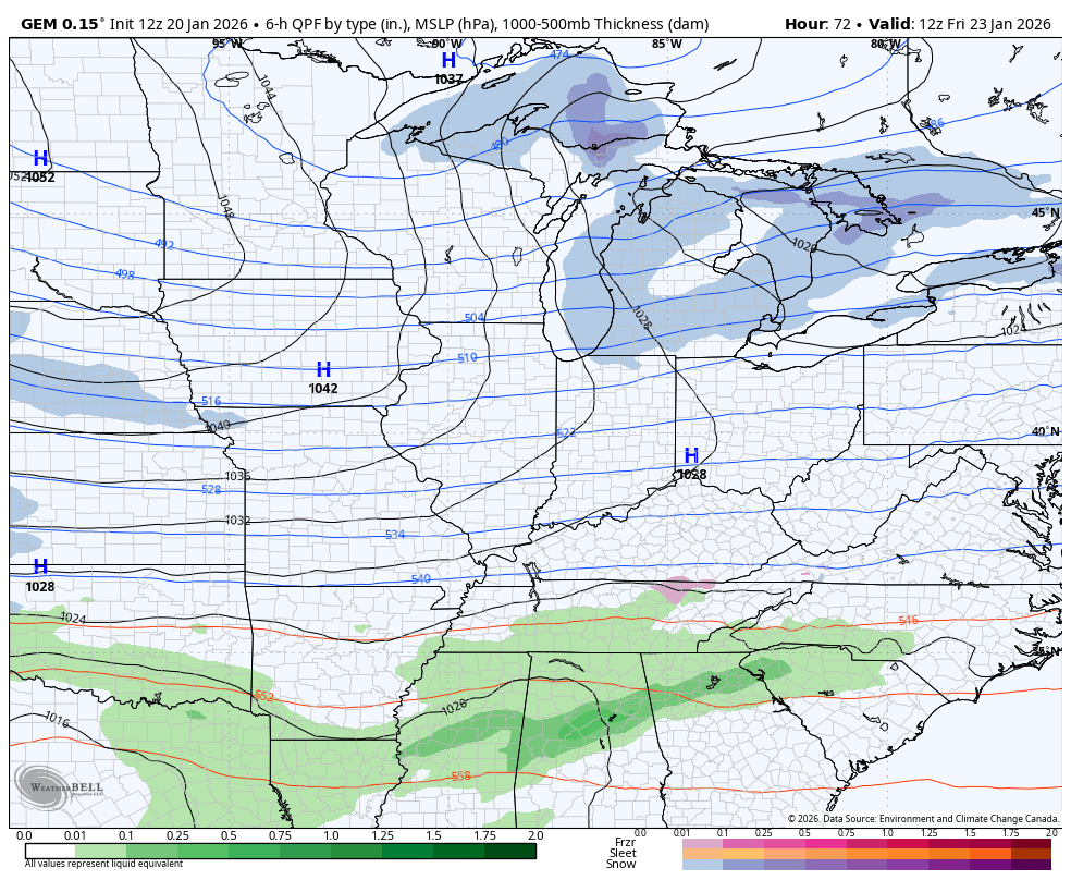 The Canadian Model continues to be steady as she goes with this big hitting system with the main system Saturday and Monday with an upper level system bringing snow into Monday…