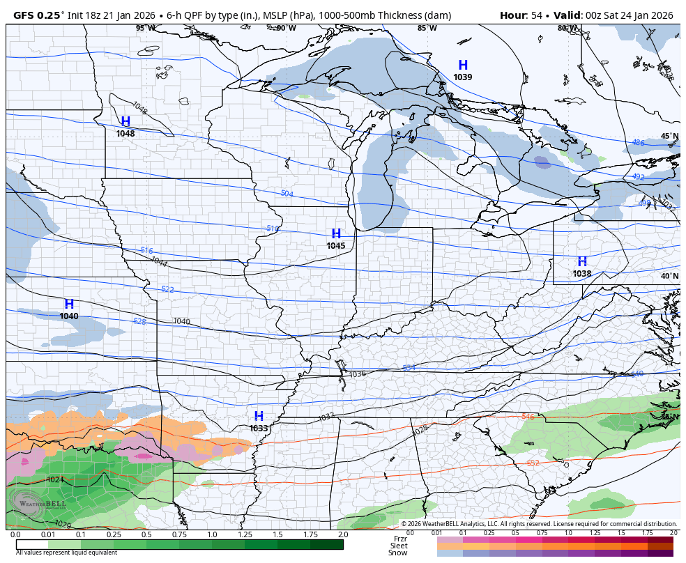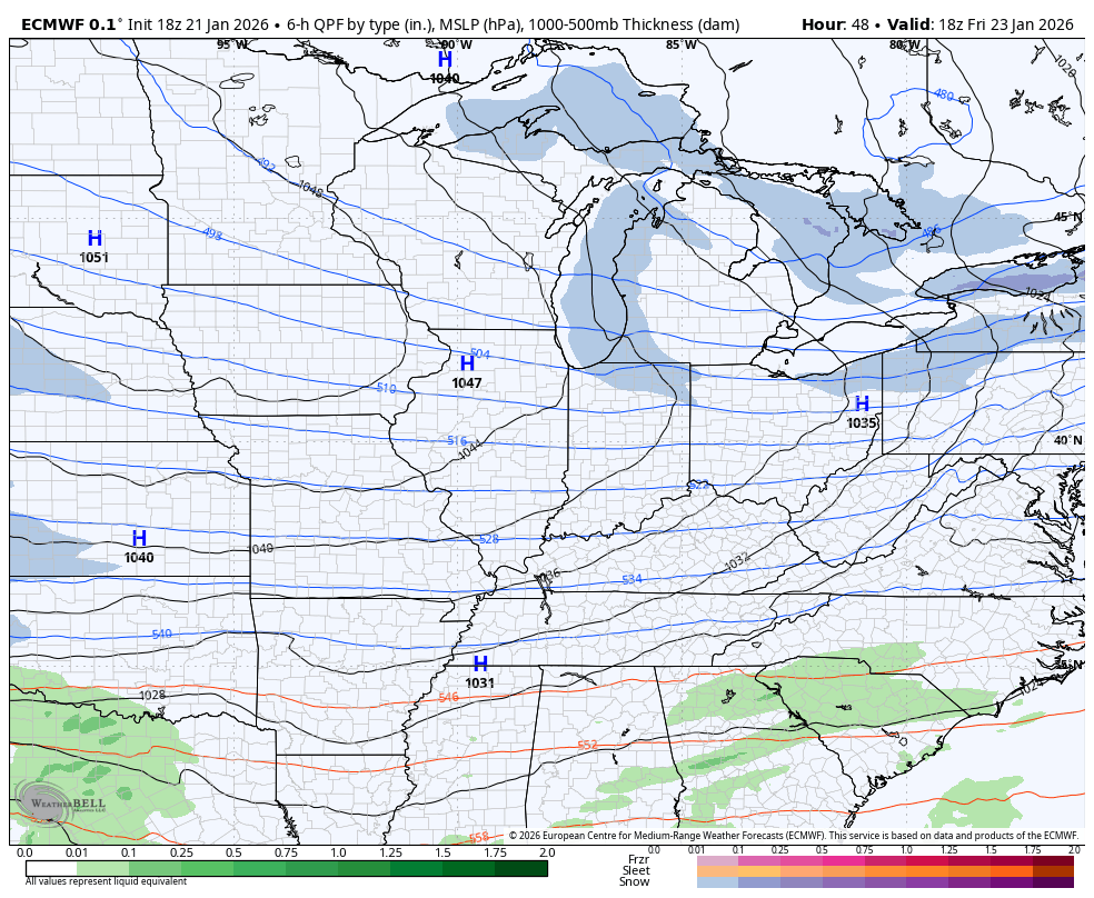 I’m good with more snow than ice and no one would argue with that. Freezing rain is the absolute last thing any of us want, but that’s certainly a possibility. The new EYRO is showing this across the south and southeast and even has a brief moment of plain rain in the southeast…
