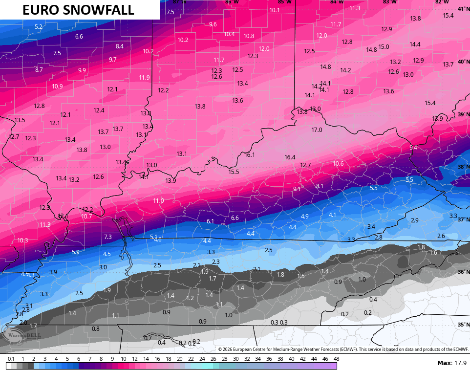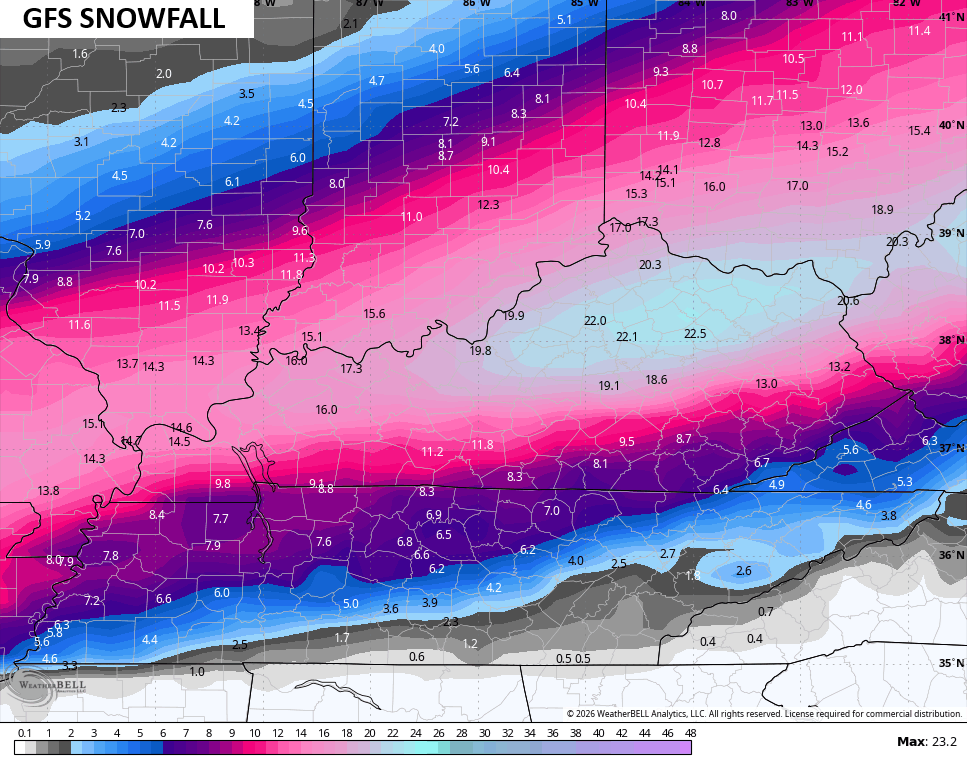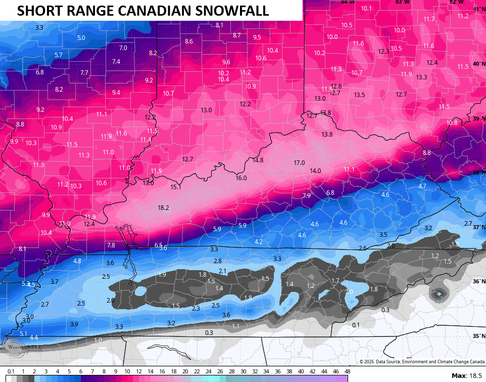 Can’t wait to see how this plays out. If the GFS is verbatim it will be the biggest snow fall for Louisville in over 20 years and break a one day total record.