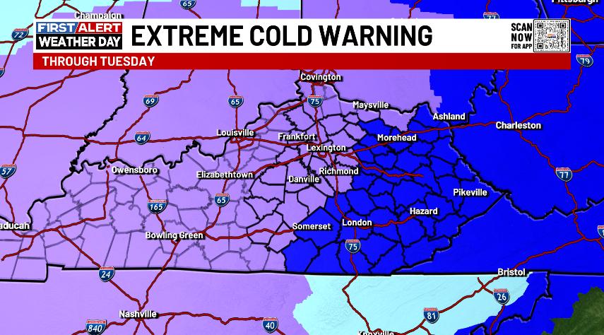 The bitter cold is the story with a rare Extreme Cold Warning out for much of Kentucky through Tuesday…