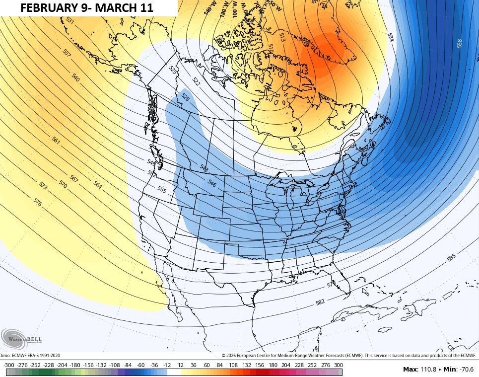 I finally had time to look down the road into February. We know it starts with a deep system in the east and that’s likely a trend for the month into early March. The EURO Weeklies have “the look” again from mid-February to mid-March…