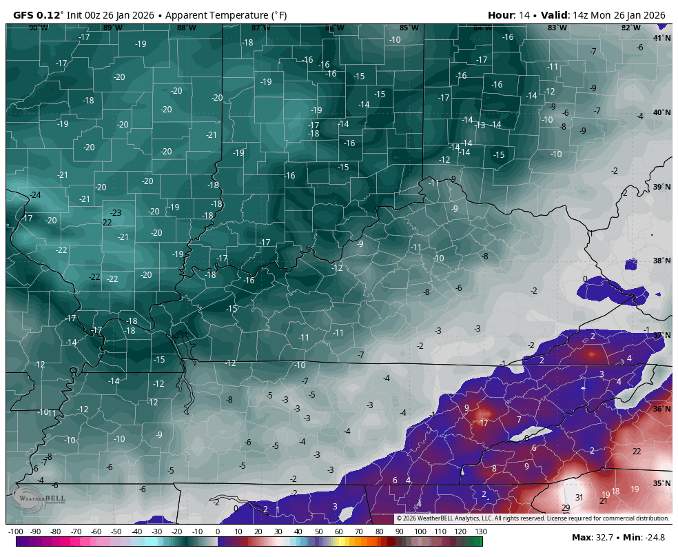 Good Monday, everyone. It’s a brutally cold close to the month of January and this likely holds into early February, at least. We are also dealing a rounds of light snow this week with the potnetial for a deeper system by the end of the week or weekend.