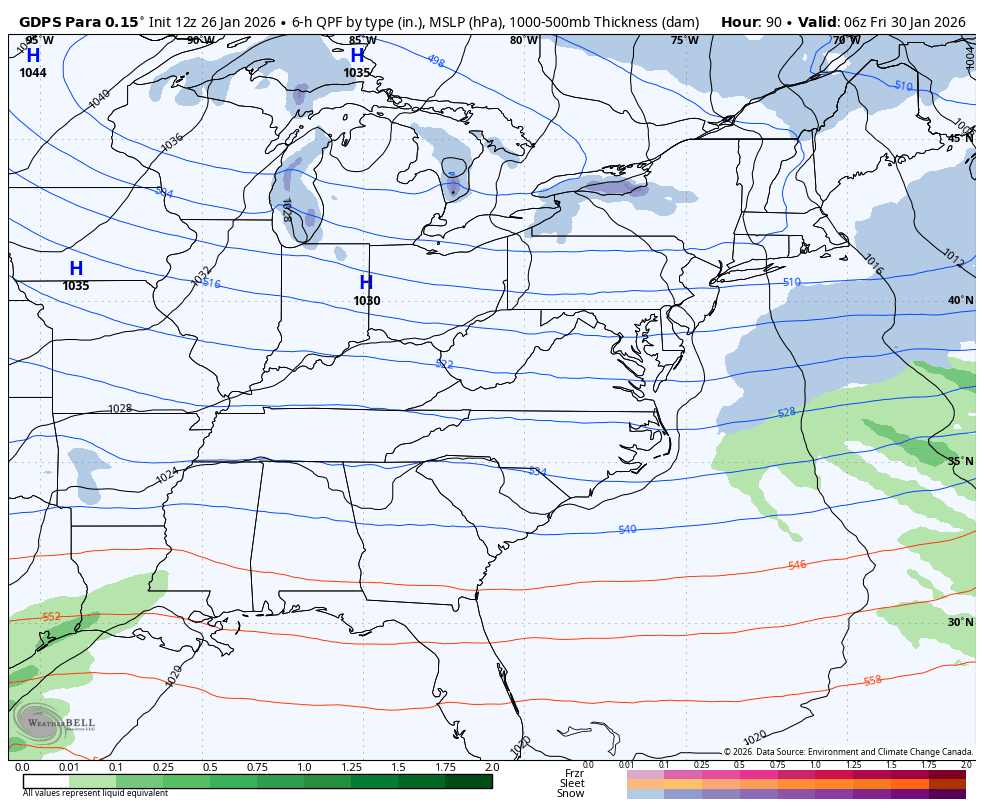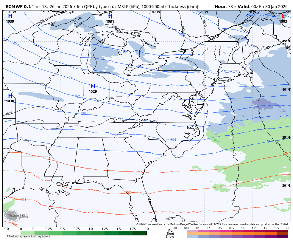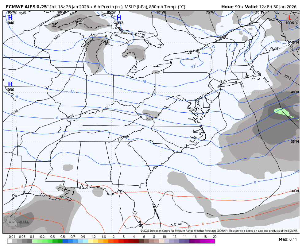 The EURO AI doesn’t give precipitation types, but it’s a bit farther west and has another system behind it a few days later…