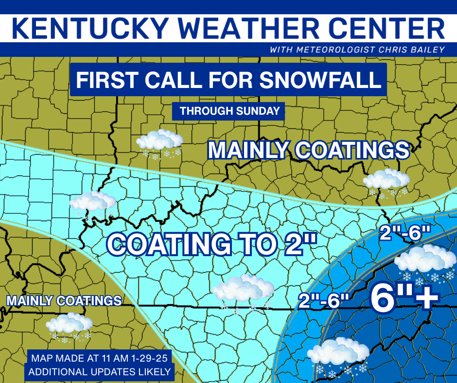 I don’t have a lot of time and will be updating things several times today and on WKYT-TV starting at 4pm, but here is your First Call for Snowfall…