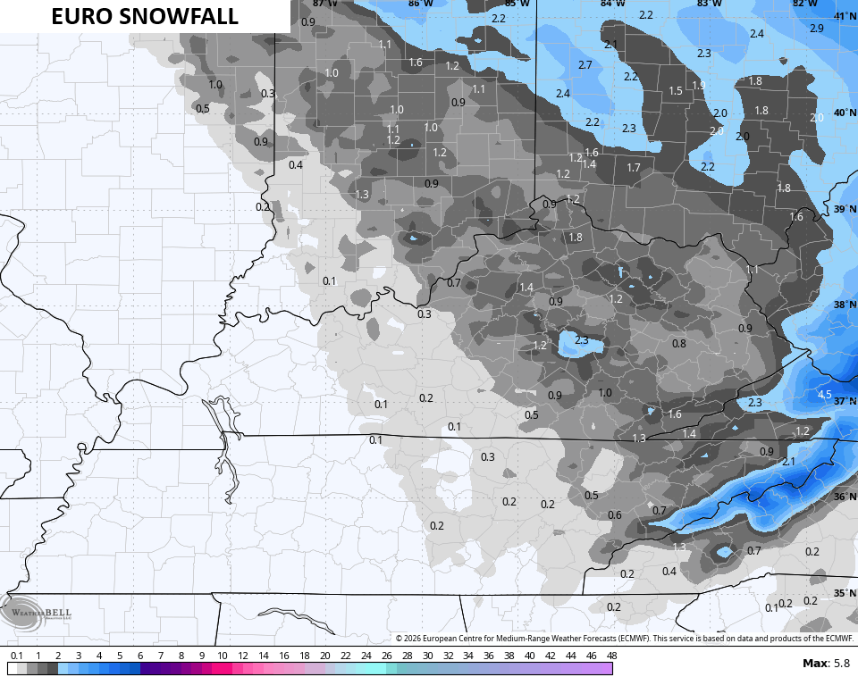 A snow shower is possible tonight with a much greater swath of light snow and snow showers dropping in on Friday. This will mainly impact central and eastern Kentucky with some snow showers and a few squalls behind it Friday night and early Saturday.