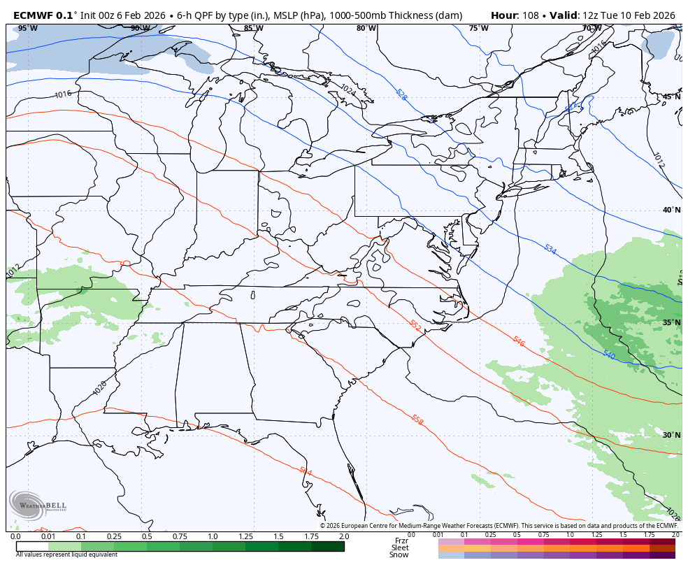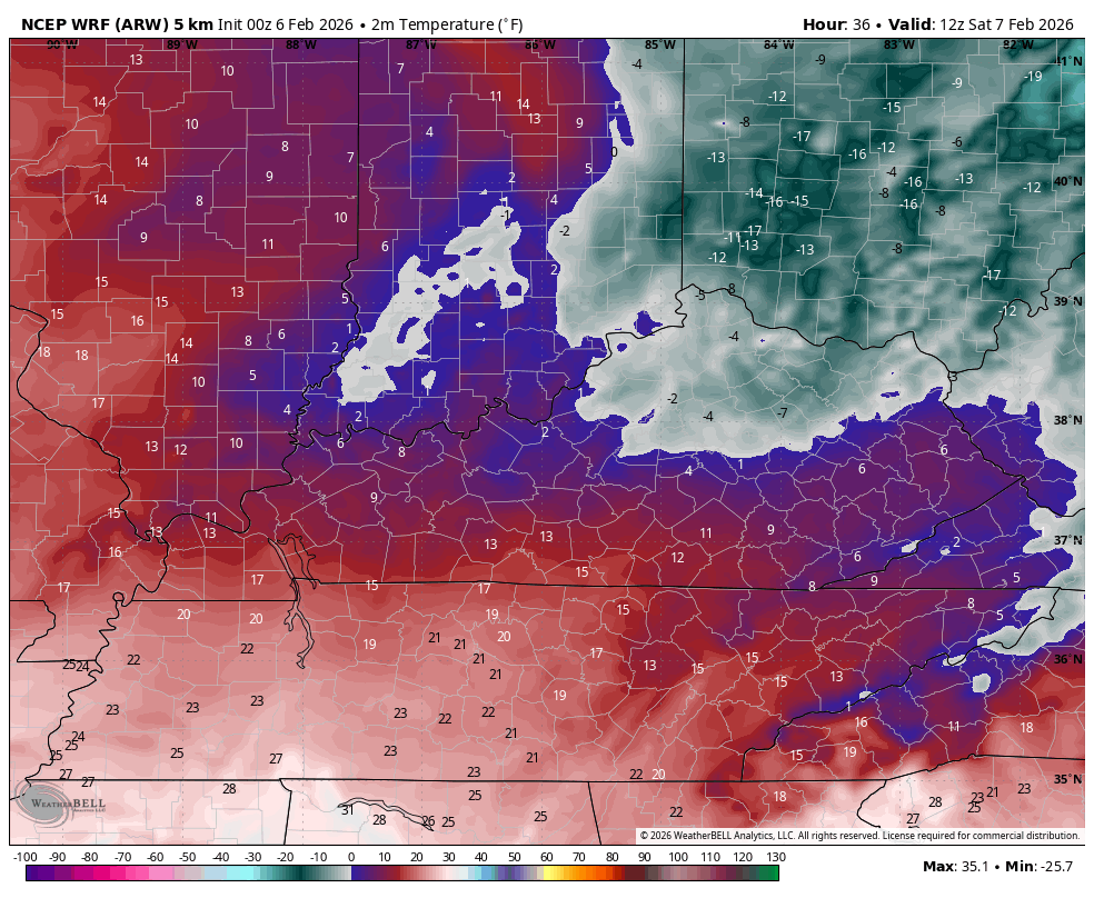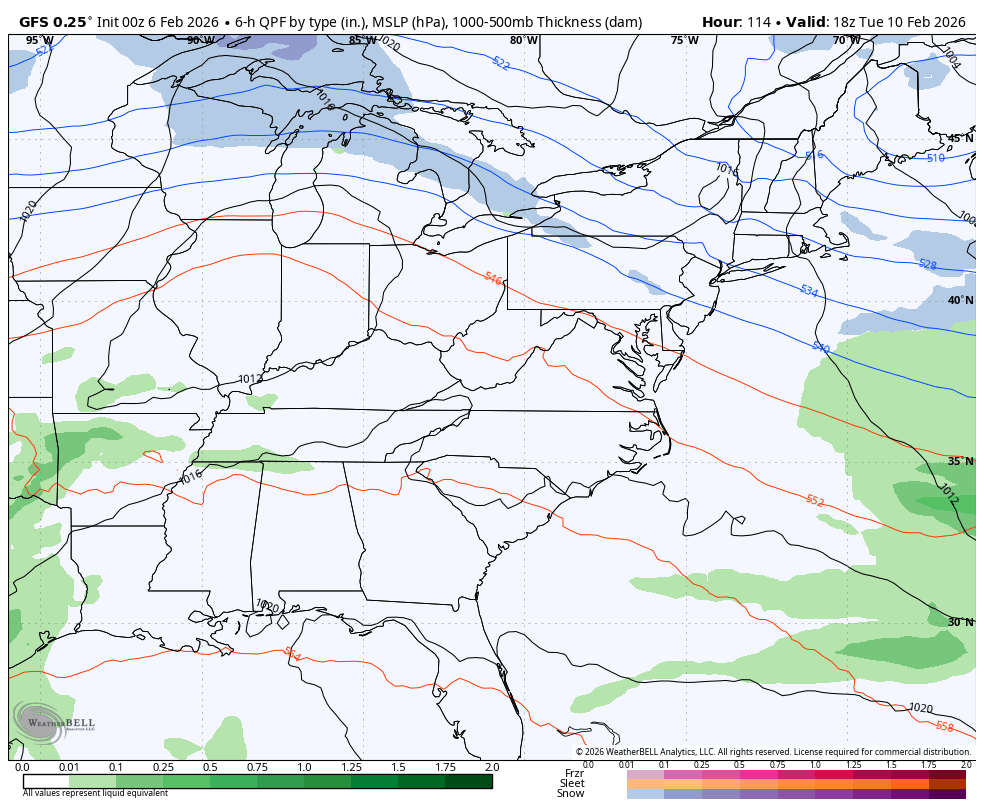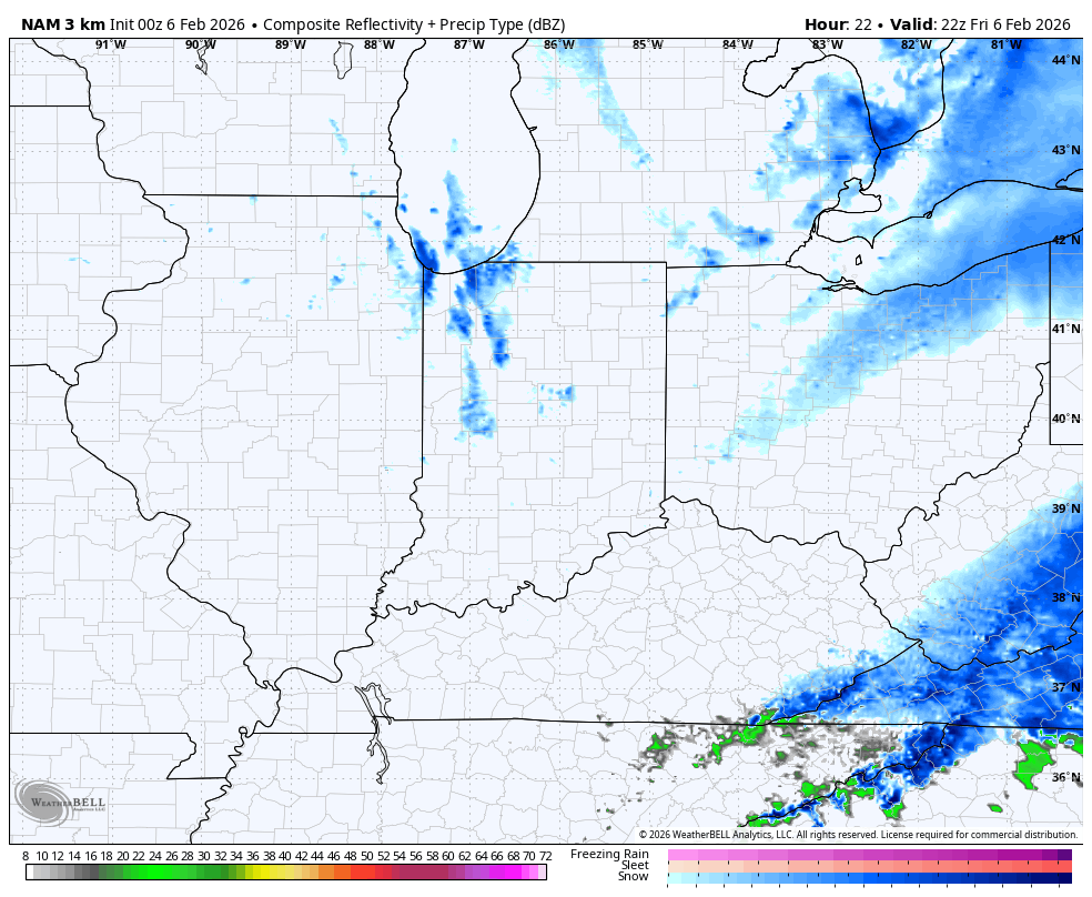 I have no real changes to this light snowfall that’s working into the region. The best chance for a few inches of snow is across the northeast with the initial stuff with lighter amounts the farther west you get into Central Kentucky…